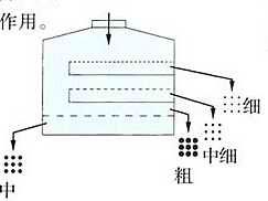 雙精度逆向篩分主要用于多層式、多種規格原料分級時搖擺篩的結構設計,此種結構設計與普通振動篩先篩粗料,再篩選細料的方式相反,細顆粒原料的篩選,較粗或較大粒級的原料保持在篩網上,以防止細粒夾雜在粗料中使得篩分不夠透徹,搖擺篩可采用彈跳球或超聲波等清網方式,起到較好的清網效果,尤其適用于大粒級原料的精細分級。如下圖2所示。