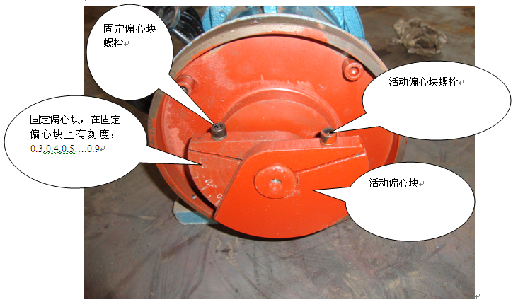 三:松開活動偏動塊上的固定螺栓,調整活動偏心塊與固定偏心塊之間的夾角,當兩偏心塊完全重合時,振動電機的激振力大,當兩偏心塊垂直時,振動電機的激振力小。.png)