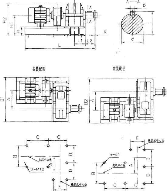 右裝一站在電動機尾部向前看,減速器低速軸在電動機的右側。